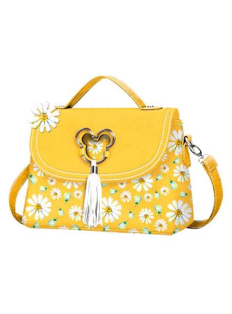 含む: 花とミッキーマウスのアクセントを持つ黄色いバッグ