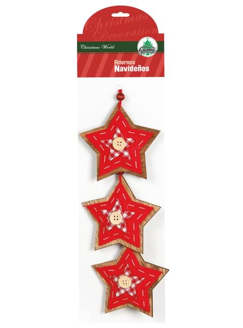 リボン付き赤星ツリー飾り3個