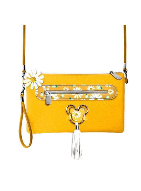 含む: 花とミッキーマウスのアクセント17 x 28 x 1.5 cmの黄色いバッグ。